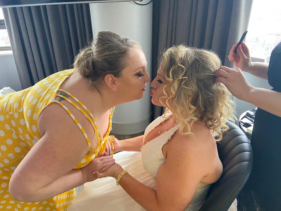 When I got back to Amie and Patricks room, the makeup artist and the hair dresser arrived. Amie got her makeup done first, using beautiful rose gold tones; and I got my hair done. This took several hours, and the bridal party all began to arrive, including Patrick’s mother and father!