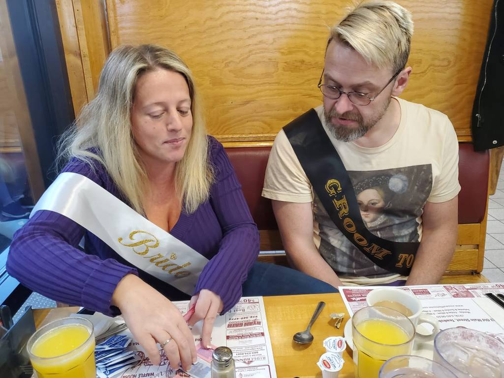 We all broke our diets for the weekend. We have all been working really hard at the Keto diet. I am down 60lbs! But their wedding was a great weekend to cheat. I ended up getting the biscuits and gravy (one of my all time favorite breakfasts), and a chocolate milk. Yes, I am a big kid.