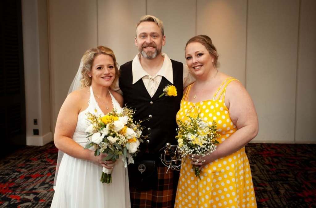 After the ceremony we did all of the wedding pictures. The photographer was amazing. Amie and Patrick thought of every combination of picture possible. And even made sure that they got special pictures with the people in our polycule. I also got a special picture with the two of them, just the throuple. I felt so important and so loved.
