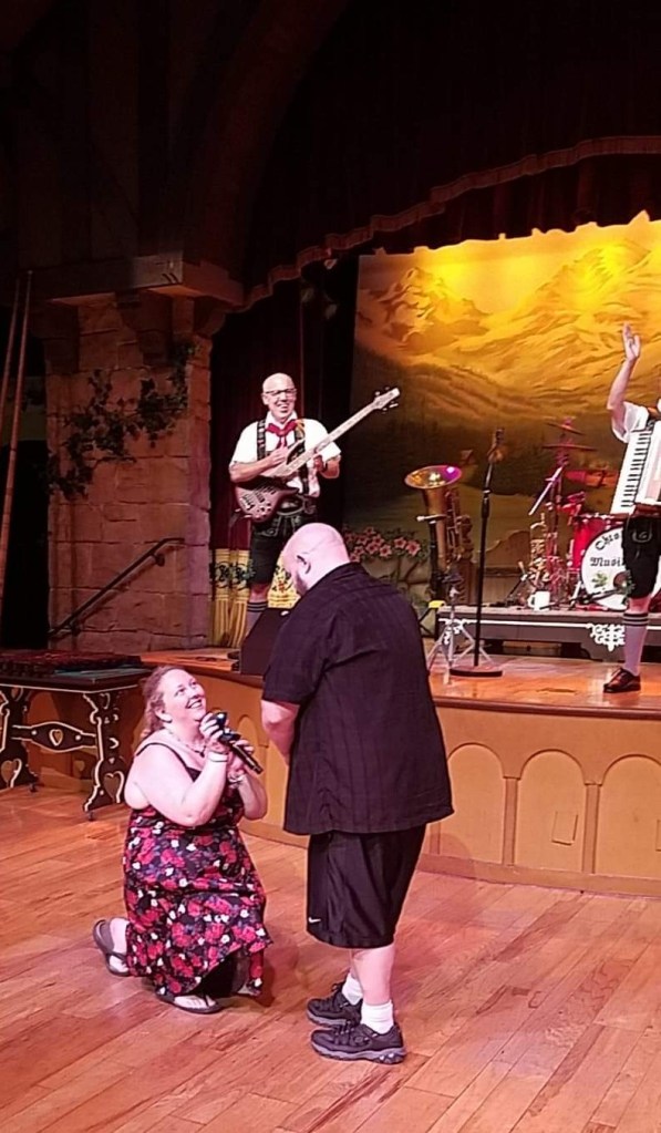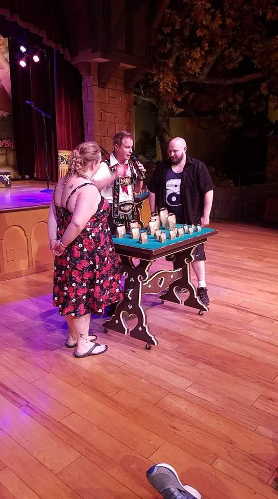 I had been here once before and it was an amazing buffet of German Cuisine. I also knew that they were going to have an audience participation dinner show, in which Scott had no clue. While we were sitting there, they had asked the crowd if anyone would like to join them to help them with the next segment of the show. I raised my hand, and they came over to us. Little did Scott know that I had pre arranged with the restaurant to choose us for this portion of the show.